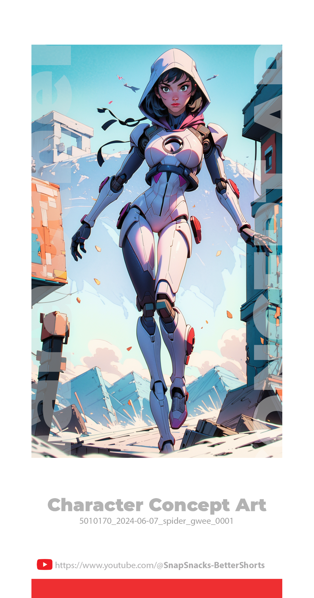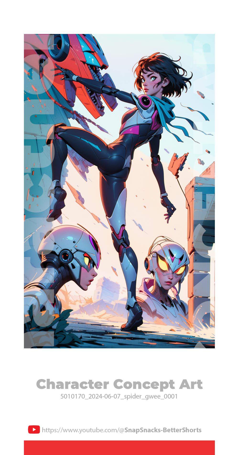 The character's pose and the inclusion of futuristic elements create a sense of movement and energy, making the artwork visually captivating.