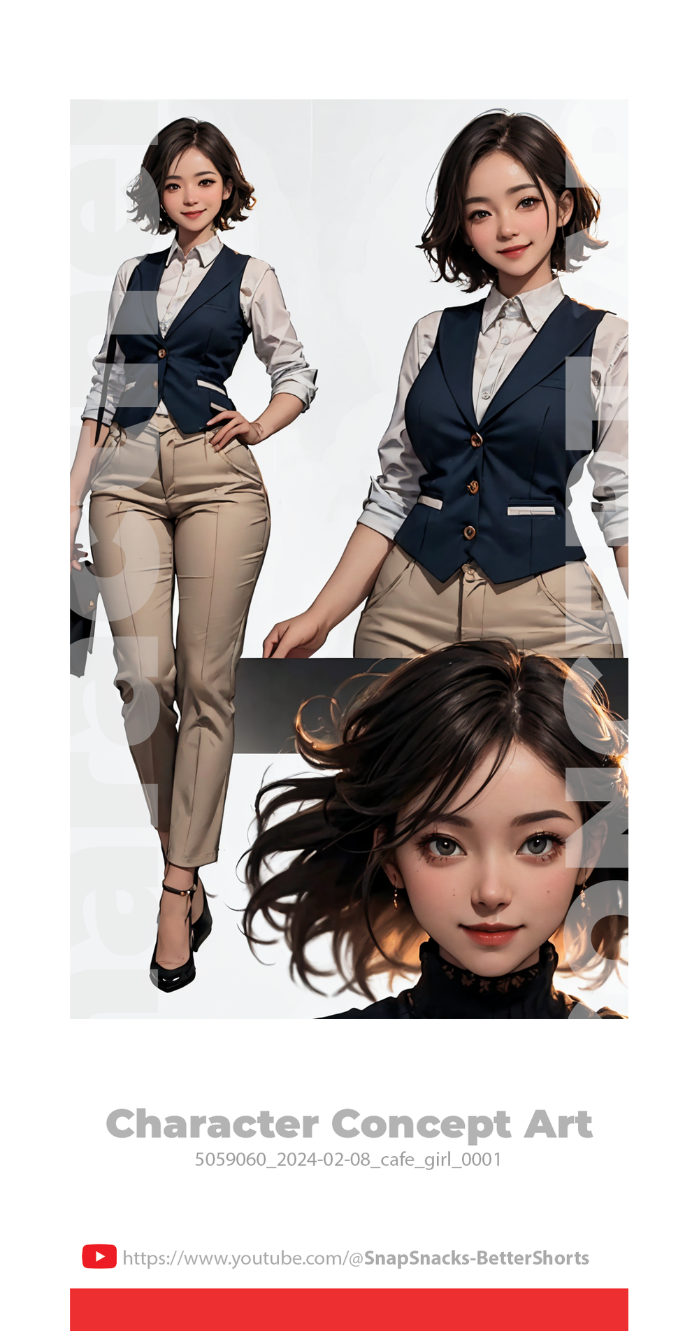 The image showcases the character from multiple angles, providing a comprehensive view of her attire and demeanor. This versatility allows viewers to appreciate different aspects of the design and can be used effectively in various contexts, such as fashion guides or character references.