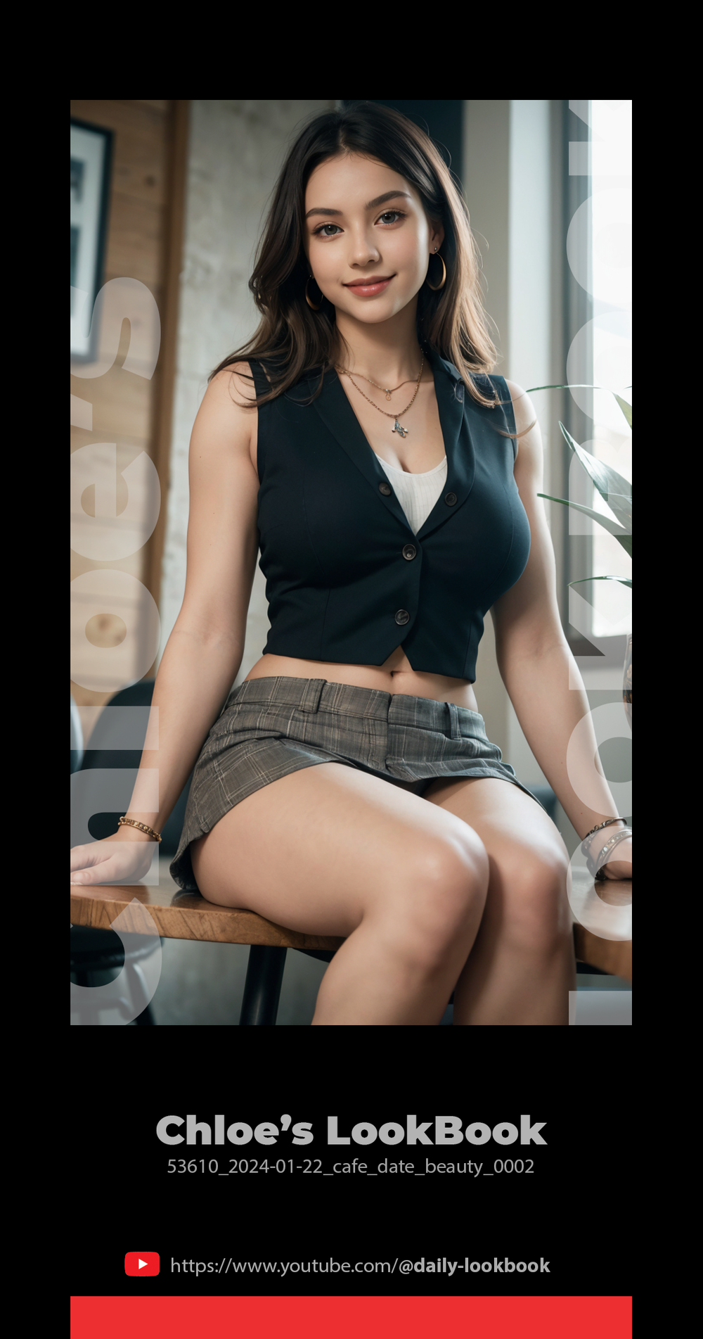 The bright weather and chic café setting enhance Chloe's aesthetic presence, creating a visually pleasing and charming image that captivates the viewer.